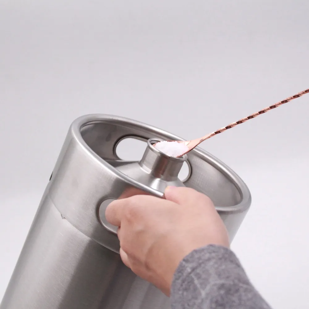 4. Using a non-metalic soft brush,brush the inside of the keg as well as the entrance.